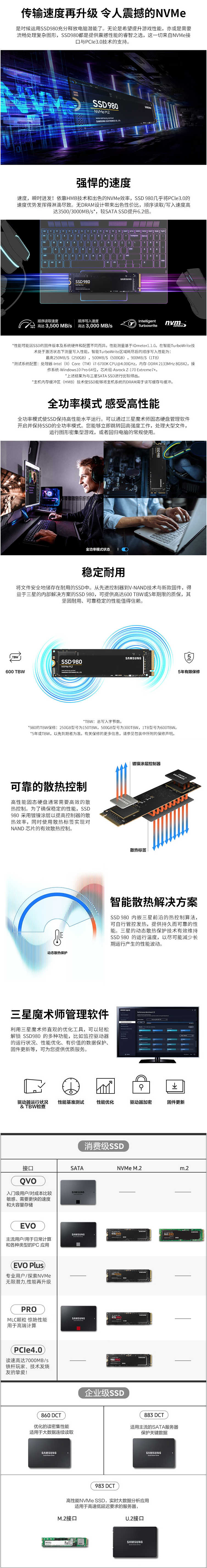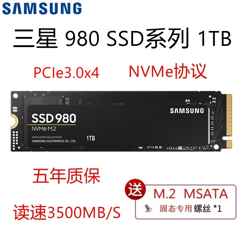 主体 品牌三星(SAMSUNG) 型号MZ-V8V1T0BW 系列980 类别SSD固态硬盘 游戏性能骨灰级 功能 接口类型M.2 读取速度3500 特性TBW 600 主控三星 Phoenix 控制器 颗粒TLC 闪存类型TLC 规格 容量1TB 缓存无 工作温度0~70摄氏度